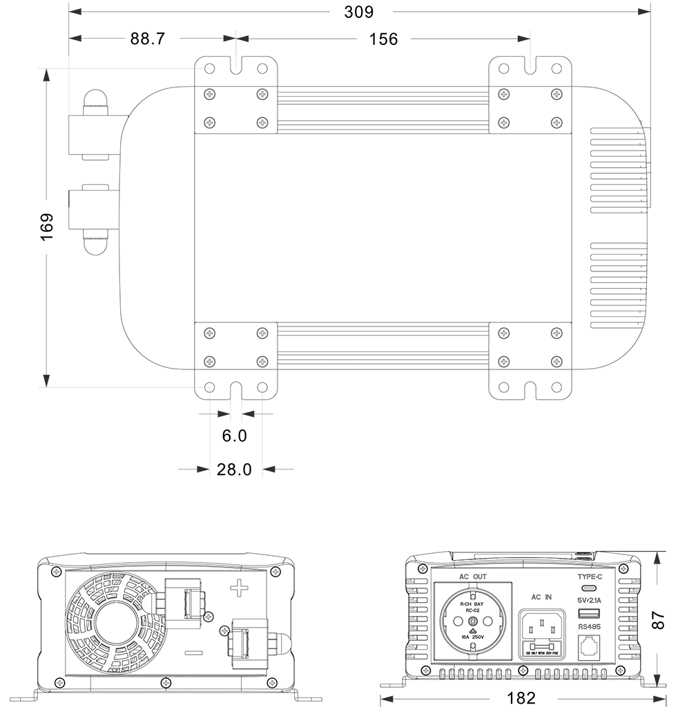 نقشه های مکانیکی: (309x182x87 میلی متر)
