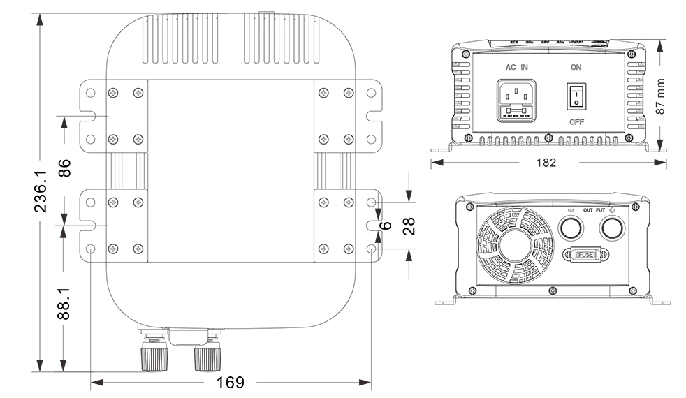 نقشه های مکانیکی: (236.1×182×87 میلی متر)
