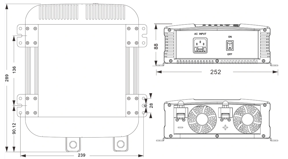نقشه های مکانیکی: (289×252×88mm)