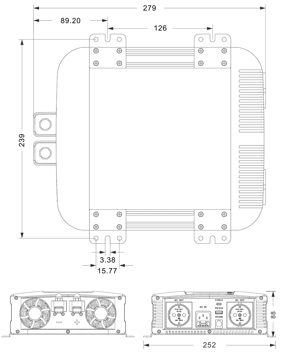نقشه های مکانیکی: (279x252x88mm)