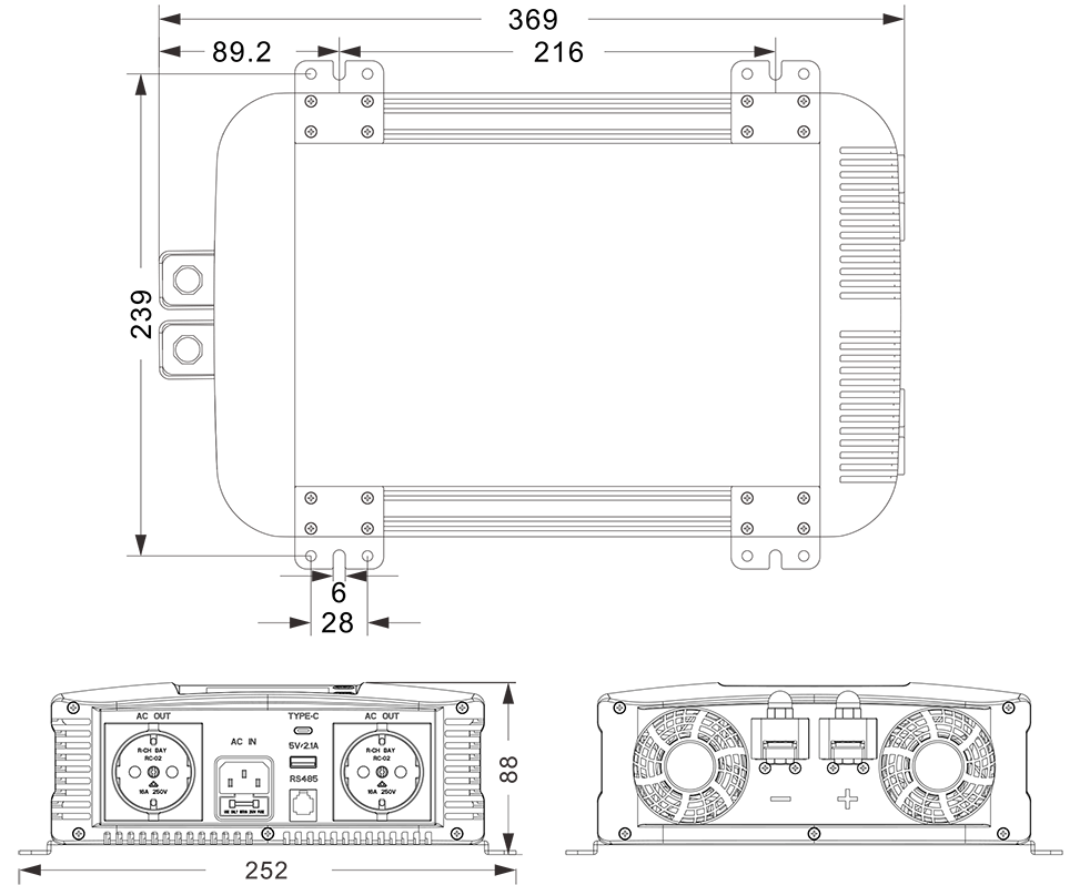 نقشه های مکانیکی: (369x252x88mm)