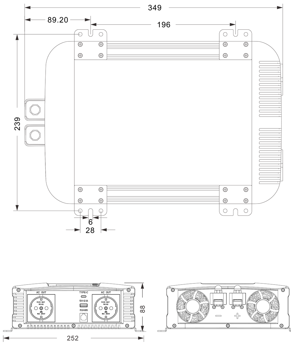 توجه داشته باشید 1. آزمایش ارزش با ولتاژ ورودی در 12.8V/25.6V/50.4V؛ 2.همه پارامترها در بار نامی، 25 دمای محیط اندازه گیری می شوند.