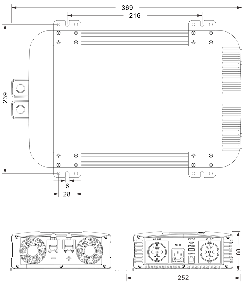 نقشه های مکانیکی: (369x252x88 میلی متر)