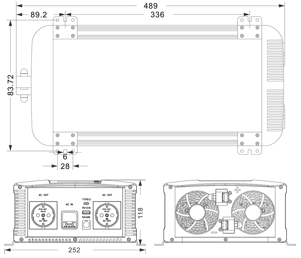 نقشه های مکانیکی: (489x252x118mm)