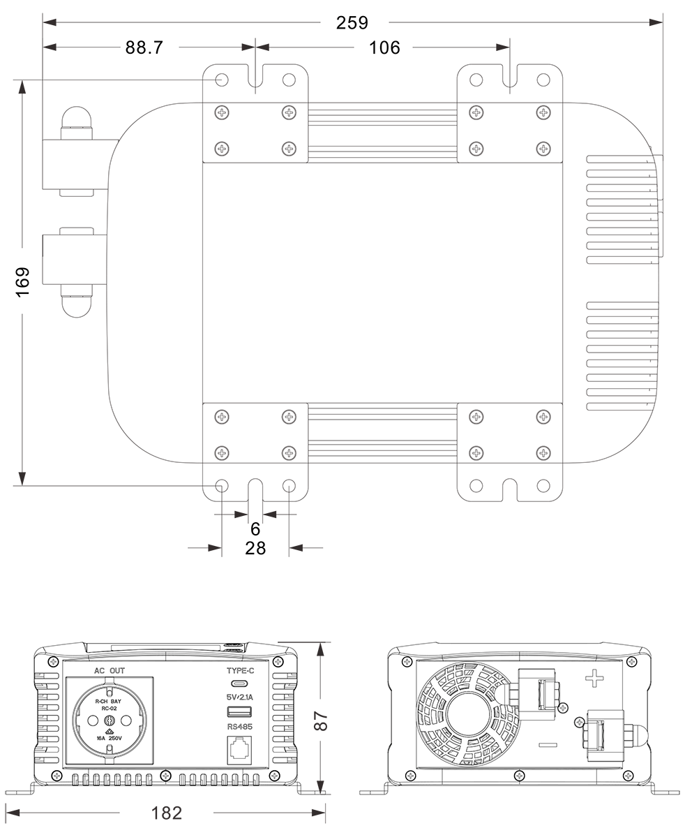 نقشه های مکانیکی: (259x182x87mm)