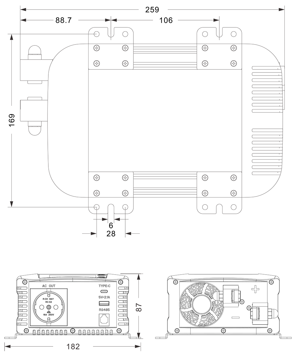 حفاظت فن خنک کننده دما 10.5VDC±0.2 ●کنترل از راه دور RS485 کانکتور 10.5VDC±0.2 ●کنترل از راه دور RS485 کانکتور