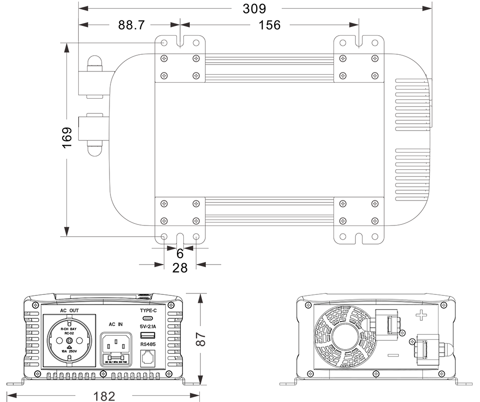 نقشه های مکانیکی: (309x182x87mm)